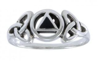 Celebrating recovery milestones allows your loved ones to share in your success. This handcrafted ring features a small AA sobriety symbol cut out from the polished sterling silver band with synthetic black onyx.
