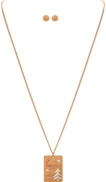 Gold Brushed Rectangle with Copper Moon and Silver Tree Nightscape Brass Necklace Set